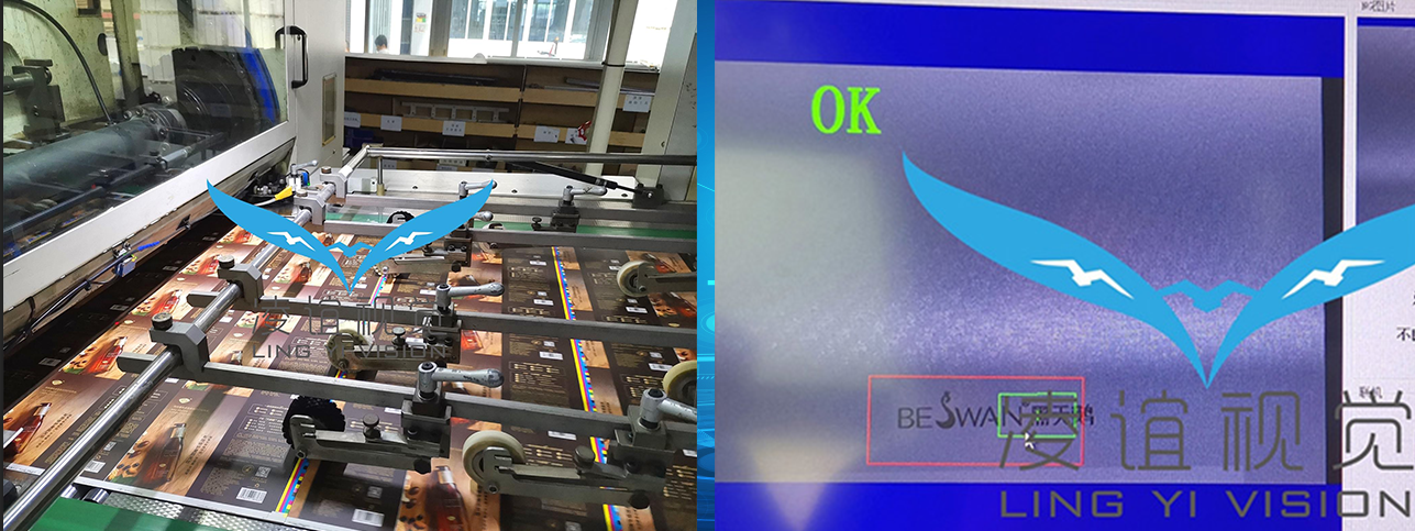 啤機/模切機在線檢測系統是加裝在模切機上,通過對每張待模切的卡紙的局部成像,依據圖像中的條碼、二維碼、圖形文字、燙金燙銀等特征,來判斷該待模切的卡紙是否存在混料、倒頁、白頁、漏印、漏燙金、漏燙銀,局部印刷不良等不良現象。當發現不良時及時輸出停機報警信號,供人工排除問題物料并復位重新運行,以確保模切后的產品的質量,該系統的高速穩定運行保障了生產的良率,杜絕了不良產品的產生,避免了客訴現象的產生,大大提高了印刷廠的生產效率。