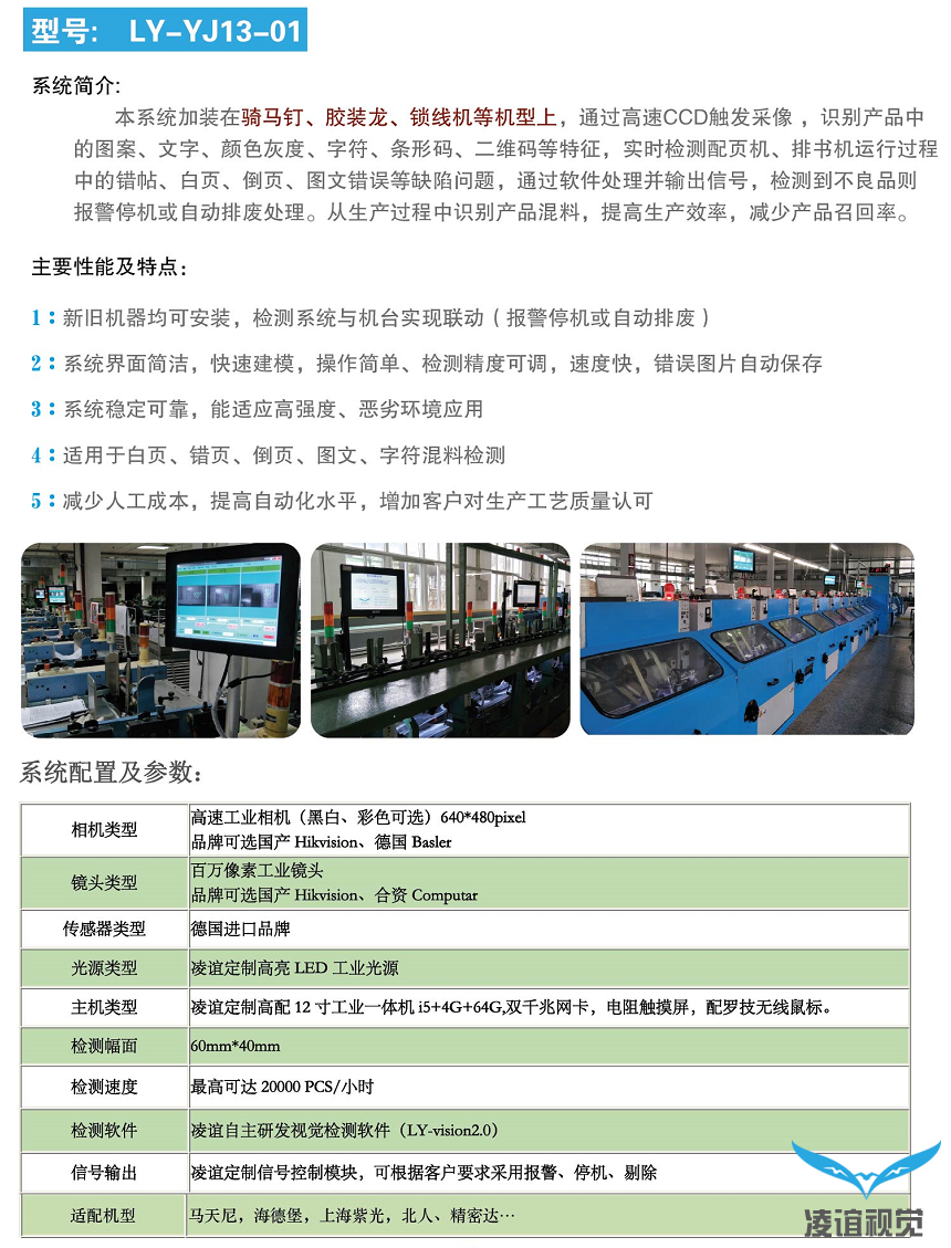 宿遷[印后裝訂加工]在線檢測錯頁/倒置/印刷缺陷/圖文防混檢測設備由深圳凌誼視覺科技有限公司自主研發(fā),利用CCD視覺技術幫助江蘇地區(qū)印刷包裝企業(yè)低成本加裝視覺檢測設備解決生產過程中出現的錯、漏、混料等問題。
